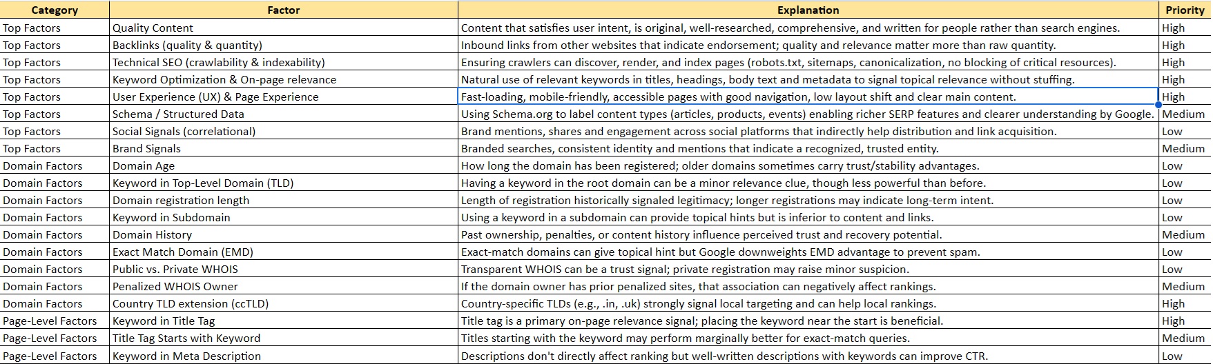 200+ Google Algorithms List ( Ranking Factors)