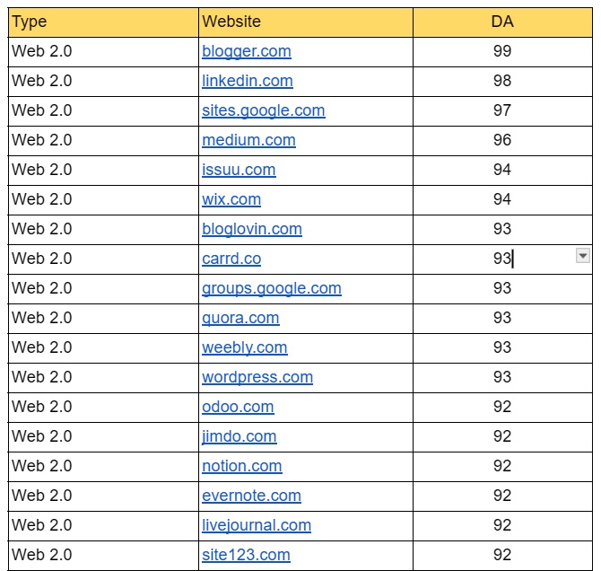 Backlink Web 2.0 & Blogging Websites List